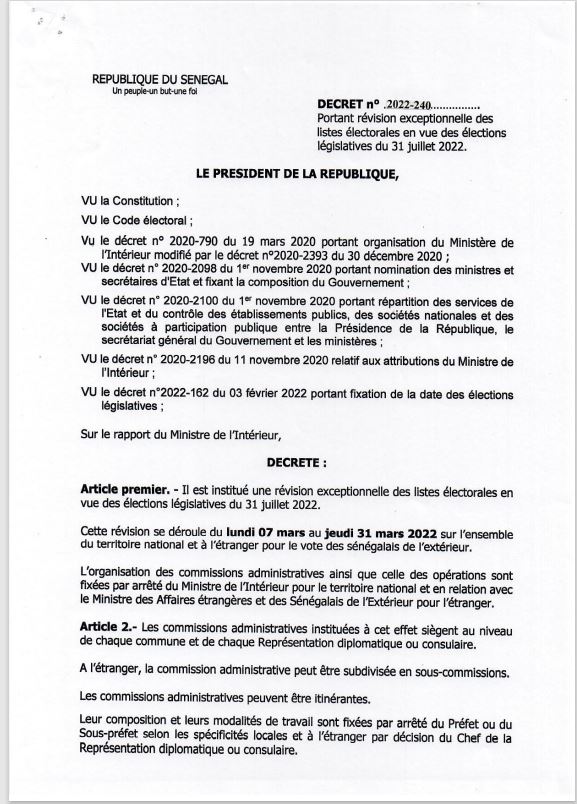 Elections législatives du 31 juillet 2022: révision exceptionnelle des listes électorales
